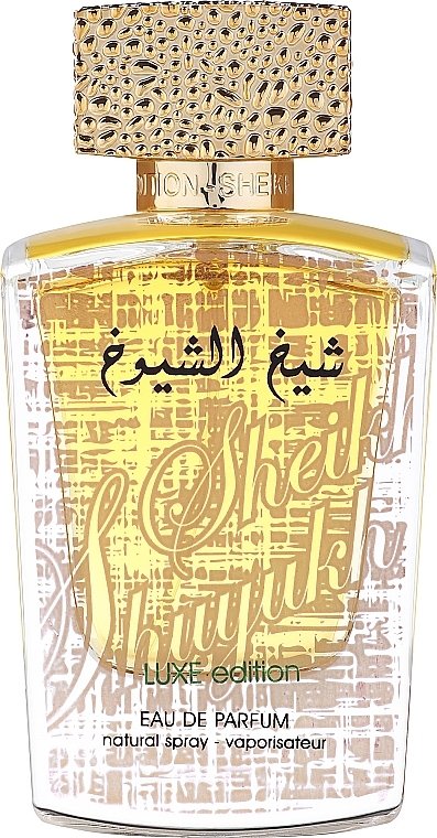 Sheikh Al Shuyukh Luxe Edition de Lattafa Perfumes es una fragancia de la familia olfativa Oriental Especiada para Hombres y Mujeres. Sheikh Al Shuyukh Luxe Edition se lanzó en 2015. Las Notas de Salida son rosa, canela y azafrán; las Notas de Corazón son caramelo y pachulí; las Notas de Fondo son notas amaderadas, vainilla, ámbar y ambroxan.